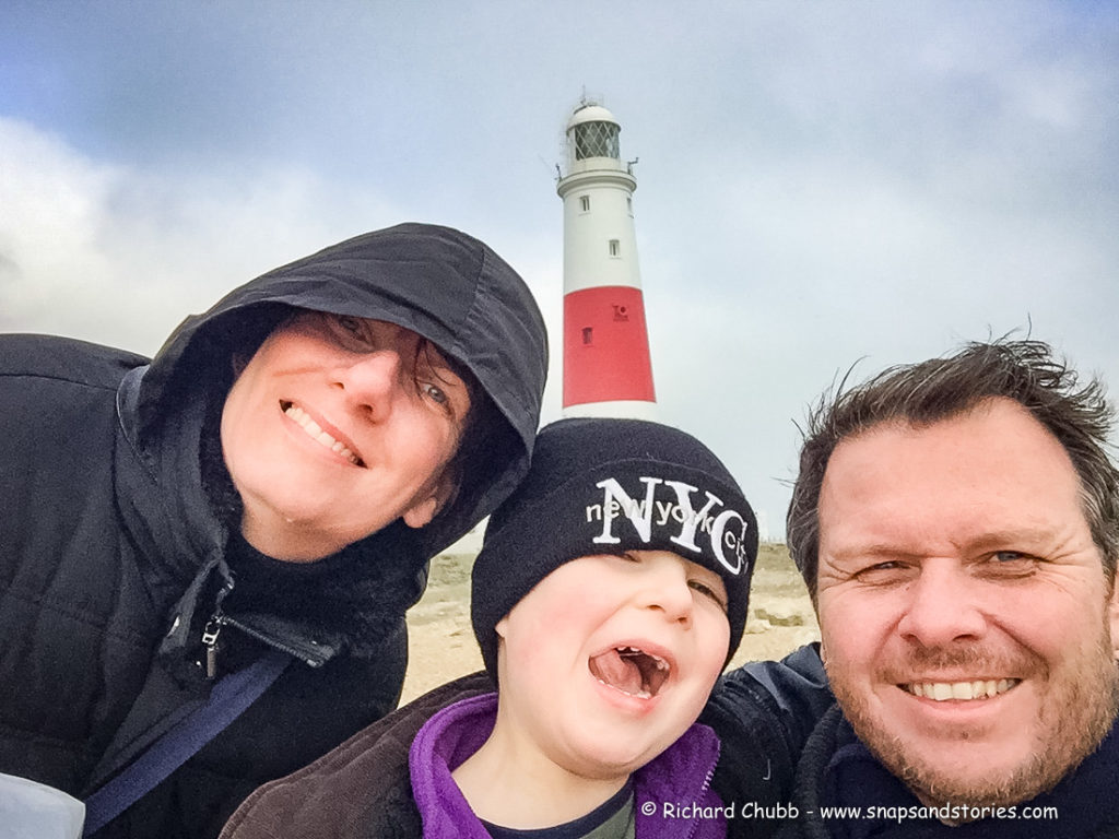 There is a large car park (charges apply all year) and then just a short walk to the lighthouse. The red and white striped Portland Bill Lighthouse stand tall and proud, and is a great sight against a clear blue sky (or cloudy sky in our case).